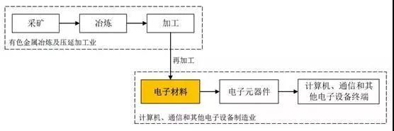 高純濺射靶材行業屬于電子材料領域,其產業鏈上下游關系如下:
